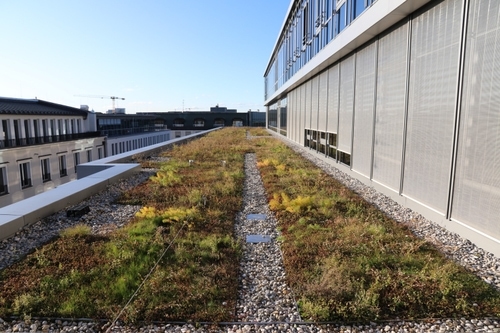 Im Juni 2016 wurde am Wittelsbacher Platz in München die neue Siemens-Zentrale eröffnet. Die Firma TOPOTEK 1 (Gesellschaft von Landschaftsarchitekten mbH) realisierte damals eine extensive Dachbegrünung, bei der als Vegetationsträger die vom IASP entwickelten Matten aus Schafwolle zum Einsatz kamen. Ein Besuch am 18.11.2019 bei der Siemens-Zentrale zeigte, dass die Sedum-Gras-Kraut-Vegetation noch immer eine 100%-ige Pflanzendeckung aufweist und mit Nährstoffen gut versorgt ist. Anhand dieses Beispiels wird wieder einmal deutlich, dass sich der Wissenstransfer von der Forschung in die Praxis für alle Beteiligten - und im Fall der Dachbegrünung sogar für die Umwelt - lohnt.